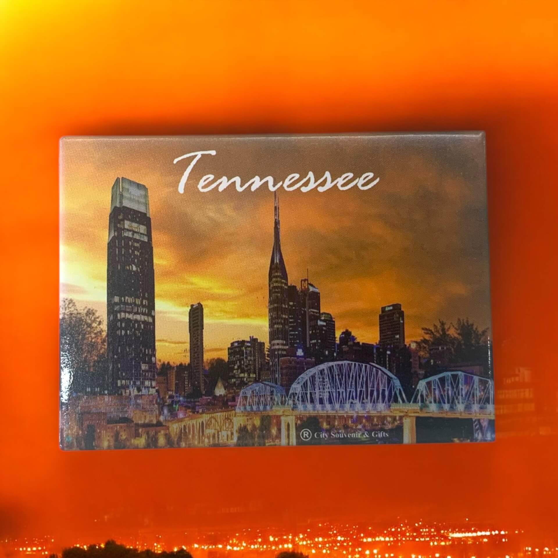 Light up your fridge with the magic of Tennessee's twinkling skyline! This gorgeous magnet captures the Volunteer State's cityscape in all its nighttime glory - perfect for showing off your Tennessee pride or giving as a Tennessee souvenir whether you're a Tennessee native, visited Music City, or just love collecting magnets from amazing places,